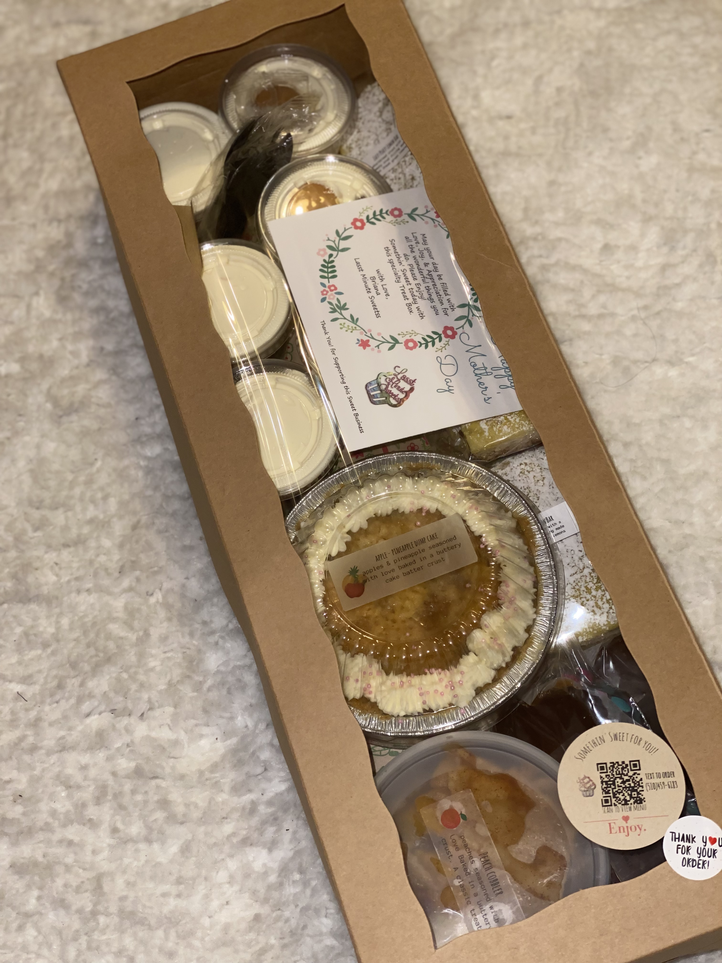 Sharing a variety of Specialty Desserts in Treat Sized Portions in a Personal Box Just for You. Enough to Share but Just Enough to Treat Yourself. Treat Boxes are Offered during Special Occasions of the Baker’s Choice.